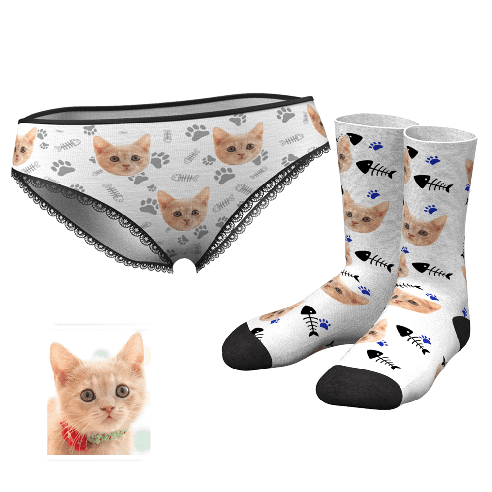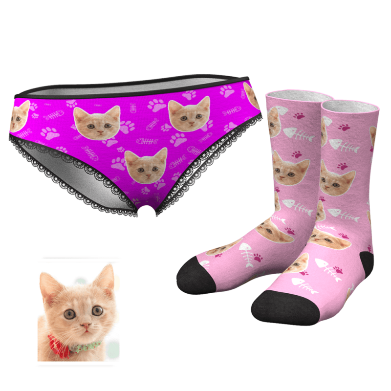 Custom Face Womens Panties-cat Claw And Crew Socks Set