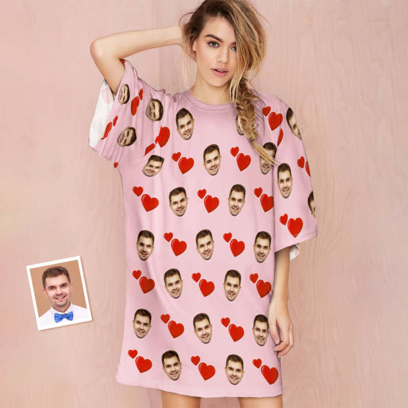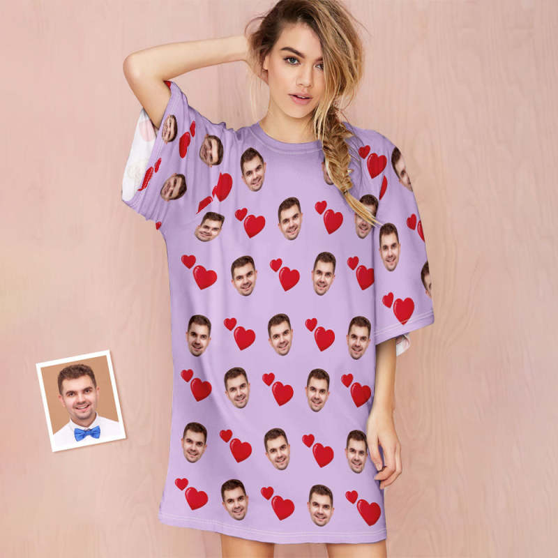 Kundenspezifisches Foto-gesichts-nachthemd Übergroße Nachthemd-herz-entwurfs-geschenke Der Personalisierten Frauen