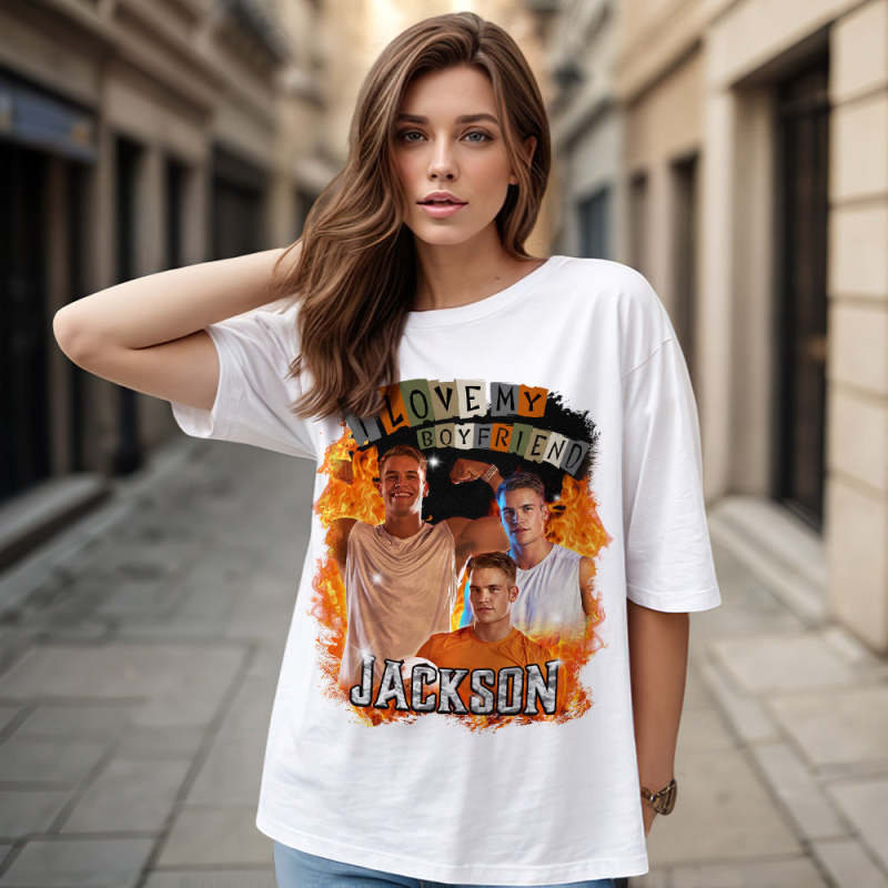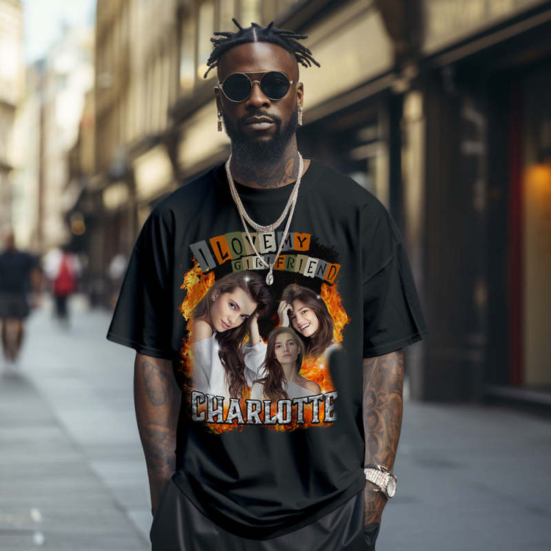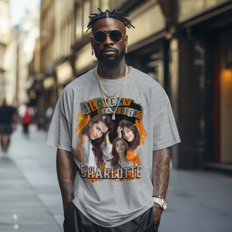 Benutzerdefiniertes Vintage-t-shirt „i Love My Girlfriend“-shirt, Personalisiertes Namensshirt Mit Foto