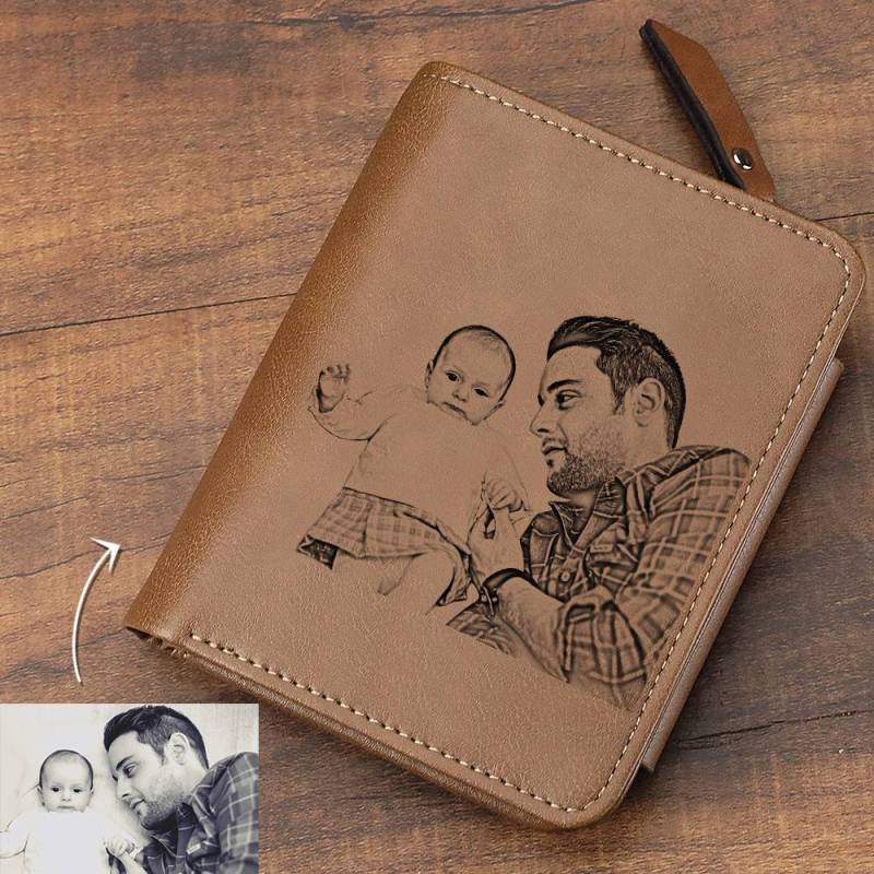 Herren Short Style Custom Inscription Foto Gravierte Brieftasche - Braunes Leder