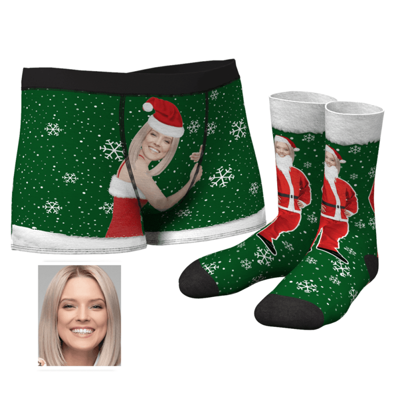 Boxershorts Und Crew-socken Mit Weihnachtlichem Gesicht Für Herren