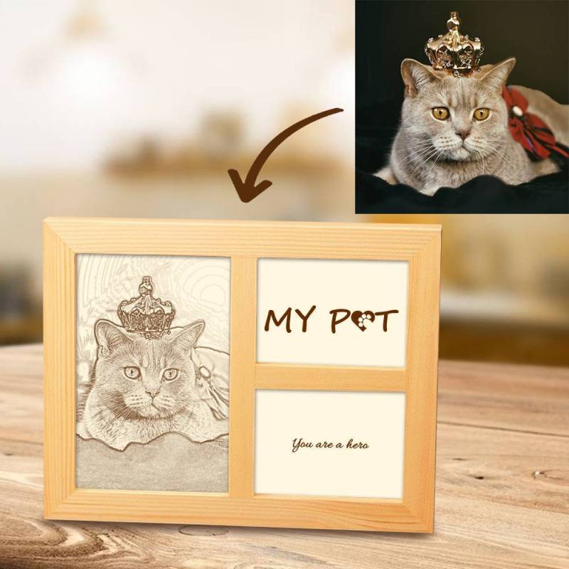Personalisiertes süßes Haustier-Fotogravur-Rahmen-Hausdekoration Holzskizzen-Effekt 8 Zoll