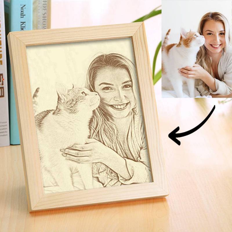 Personalisierter Niedlicher Haustierfotorahmen Holz Hausdekoration Skizzen-Effekt 10 Zoll