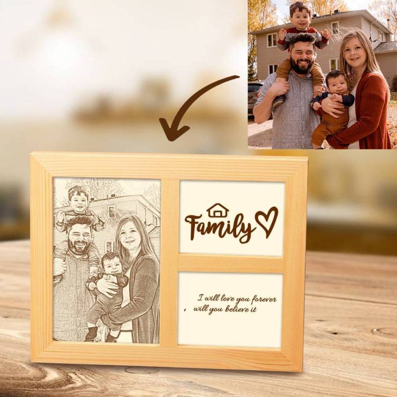 Personalisierter Holzrahmen mit graviertem Foto - Dekoration für Zuhause, mit Sketch-Effekt, 10 Zoll, für Familie