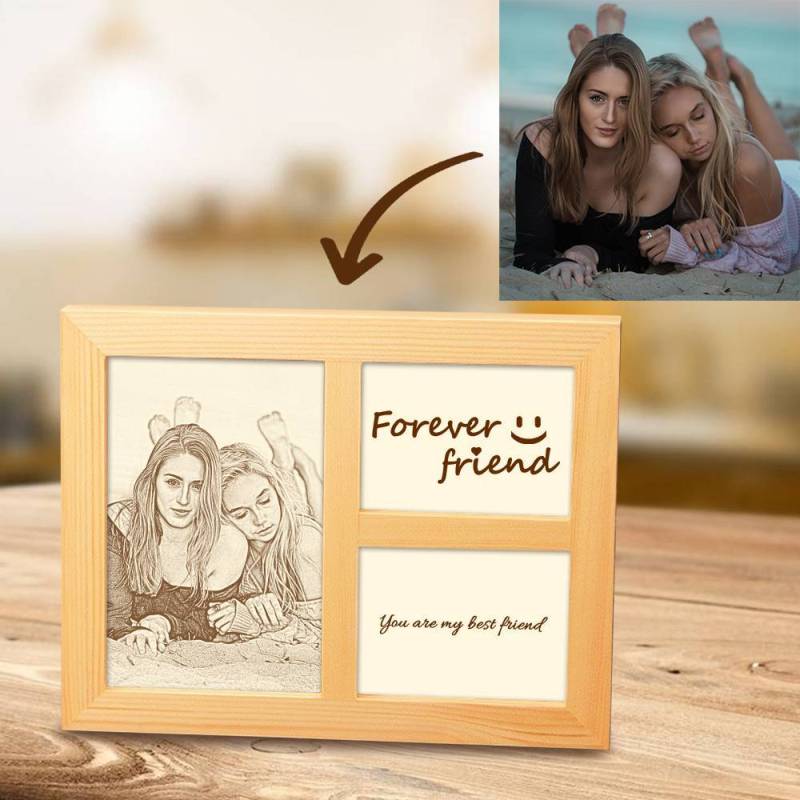 Personalisierte Foto eingraviert Rahmen Home Decor Holz Skizze Wirkung 8 Zoll Freund